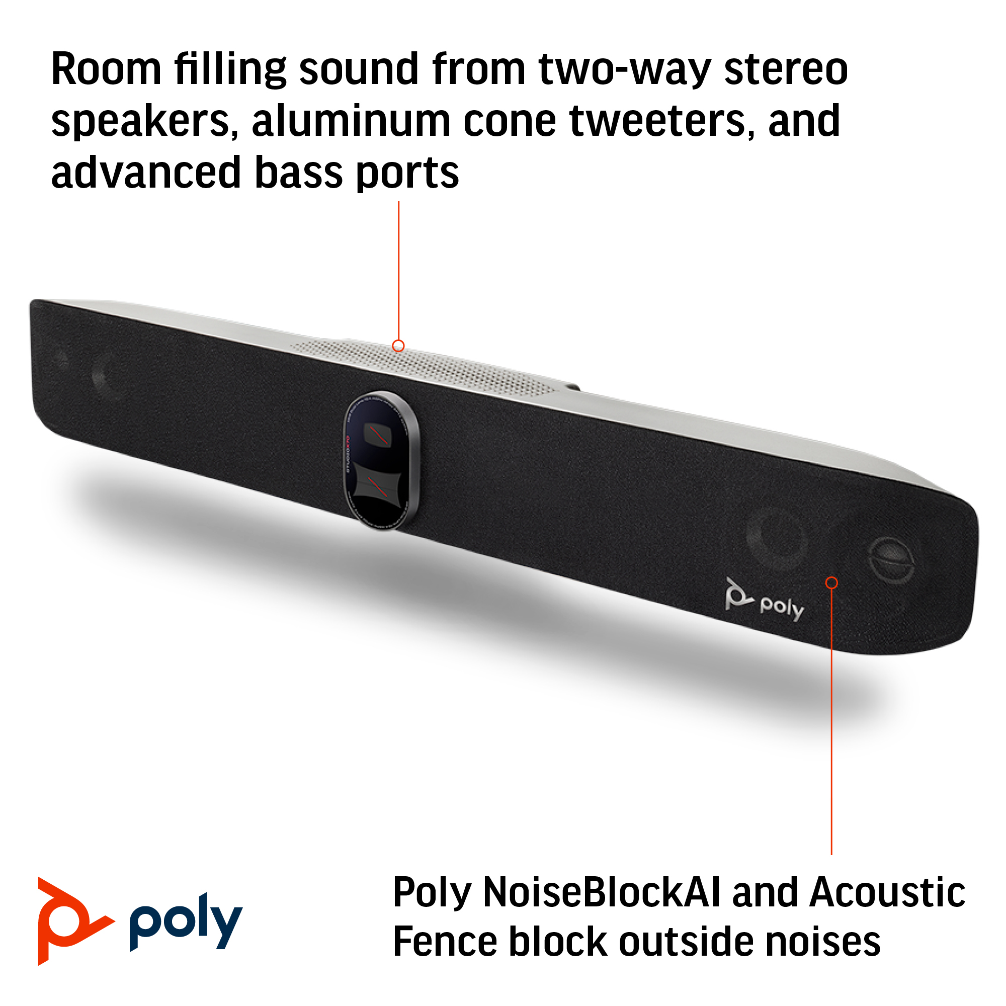 Keep your eye on the action with Poly DirectorAI intelligent camera framing and NoiseBlockAI technology — all powered by machine learning. Get advanced vocal pickup from our next gen microphones. Easily share content over wired or wireless connections.